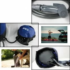 Fonctionnement : Le sac doit être rempli d’eau et placé sous le soleil, afin que l’eau devienne chaude. Votre douche peut être ainsi prête à l’emploi, après 3 heures d’exposition aux rayons solaires pour 45° de chauffe.