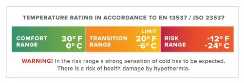 Température confort : 0°C, température transition: -6°C, température limite -23°C